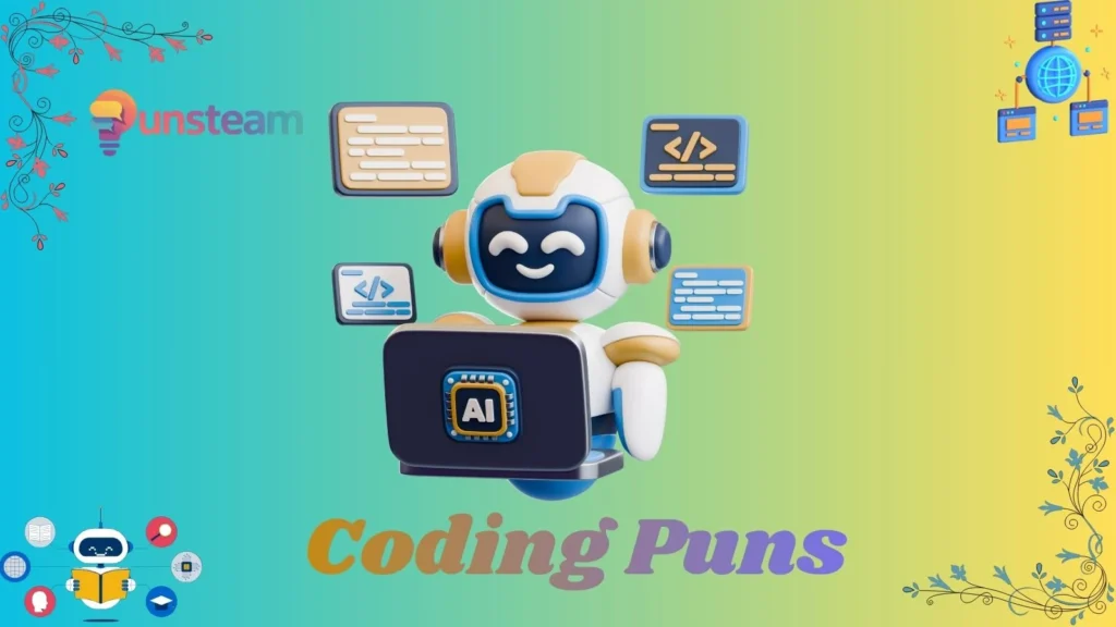 Coding puns are jokes that use programming terms in a funny or clever way.